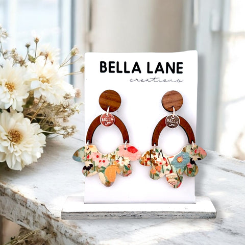Rustic Garden Timber Scalloped Cut Out Earrings