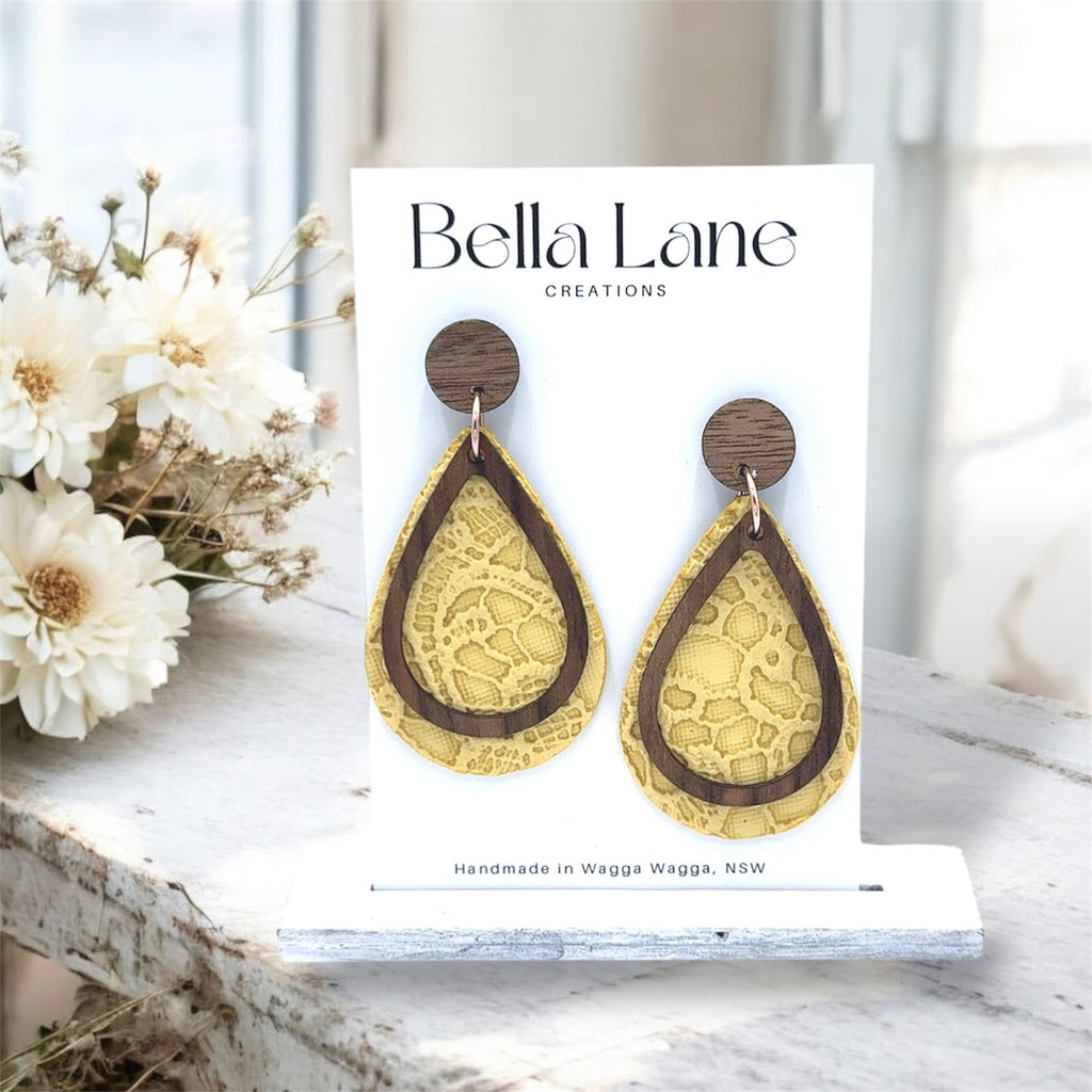 Please Note: Our earrings are unique, custom cut and created by Bella Lane Creations. As these are handmade colour and pattern may vary piece to piece.